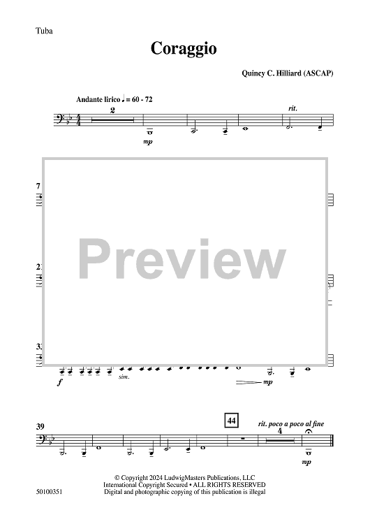 "Coraggio - Tuba" Sheet Music by Quincy C. Hilliard