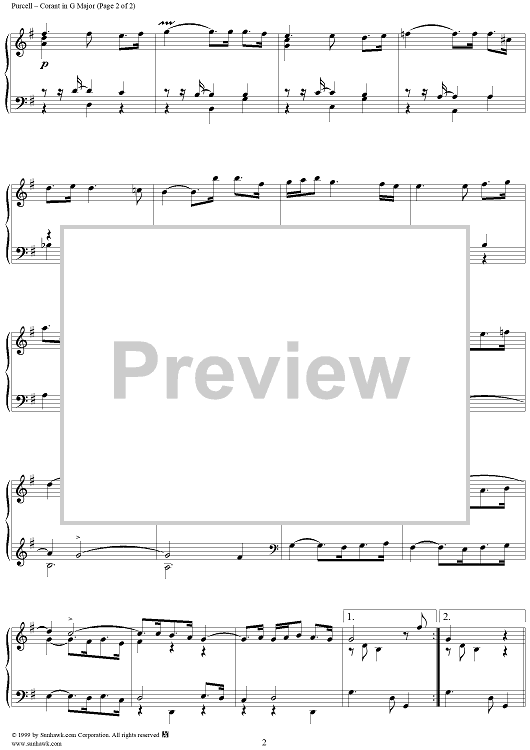Digital Sheet Music for Corant in G Major by Henry Purcell scored for Piano Solo; id:255043