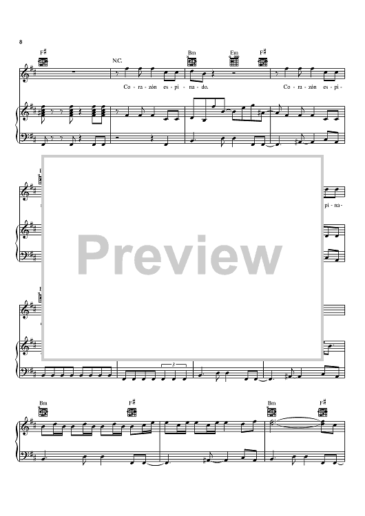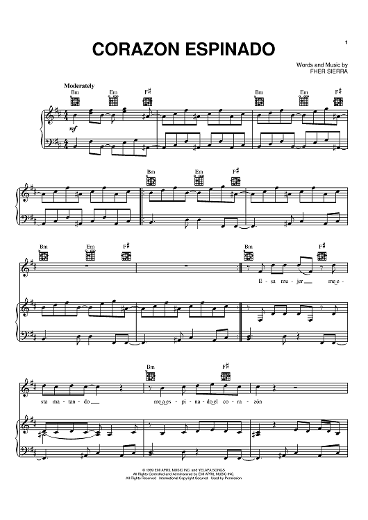 Digital Sheet Music for Corazon Espinado by Maná, Santana, Fher Sierra scored for Piano/Vocal/Chords; id:371143