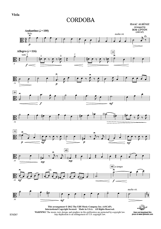 Digital Sheet Music for Cordoba - Viola by Isaac Albéniz, Bob Lipton scored for String Orchestra; id:431952