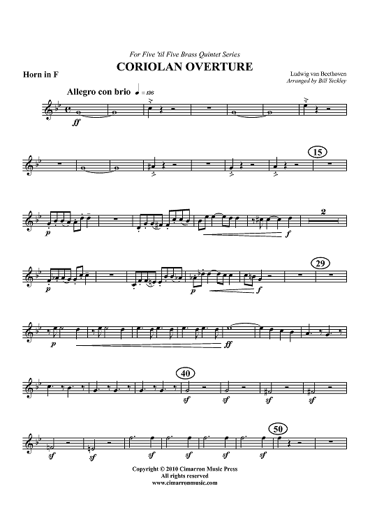 Digital Sheet Music for Coriolan Overture - Horn in F by Ludwig van Beethoven, Bill Yeckley scored for Brass Quintet; id:427181
