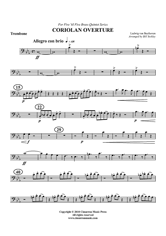 Digital Sheet Music for Coriolan Overture - Trombone by Ludwig van Beethoven, Bill Yeckley scored for Brass Quintet; id:427182