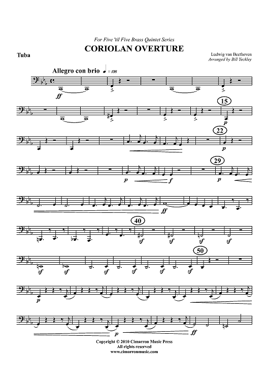 Digital Sheet Music for Coriolan Overture - Tuba by Ludwig van Beethoven, Bill Yeckley scored for Brass Quintet; id:427183