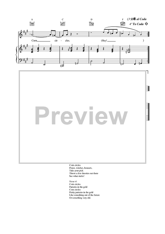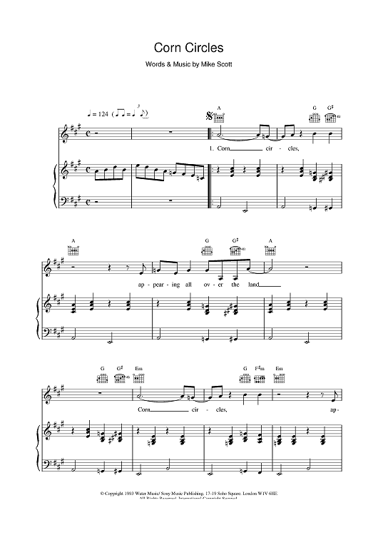 Digital Sheet Music for Corn Circles by Scott,M, The Waterboys scored for Piano/Vocal/Chords; id:379652