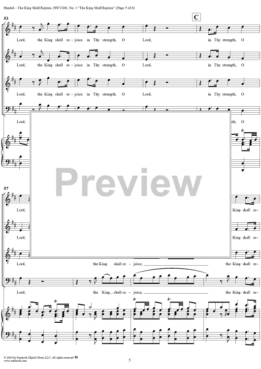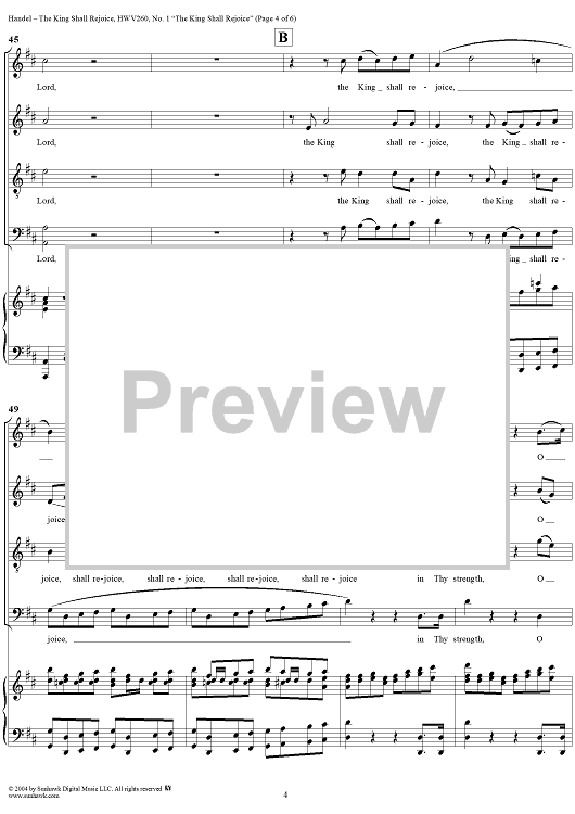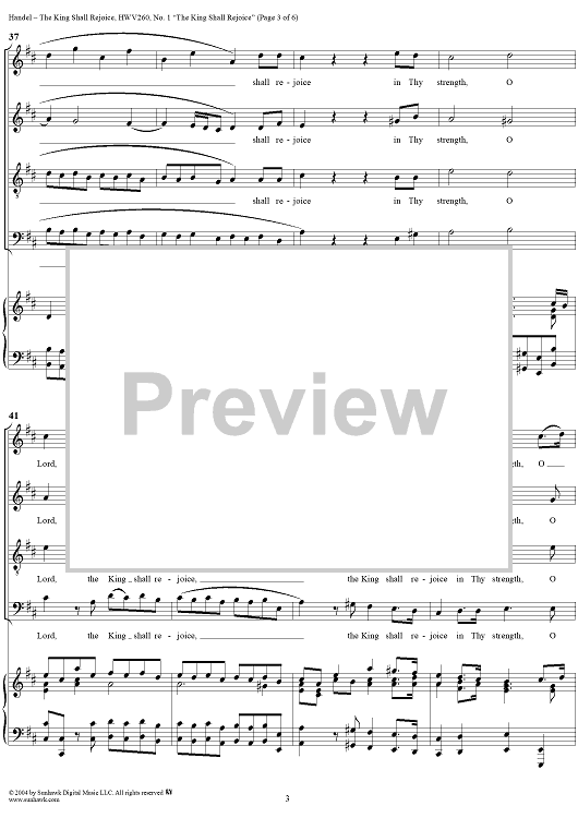 Digital Sheet Music for Coronation Anthems, No. 3: "The King Shall Rejoice" (Psalm 21), No. 1. "The King Shall Rejoice" by George Frideric Handel scored for Four-part Mixed Chorus/Piano; id:306635
