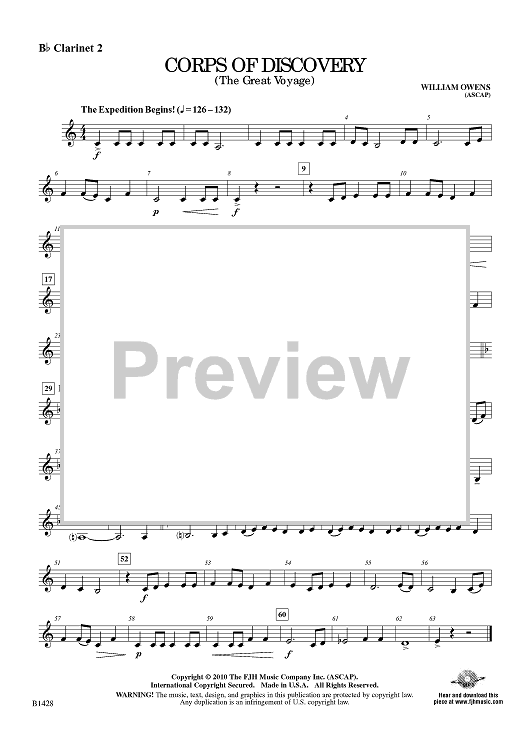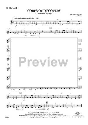 Digital Sheet Music for Corps of Discovery (The Great Voyage) - Bb Clarinet 2 by William Owens scored for Beginning Band; id:415093