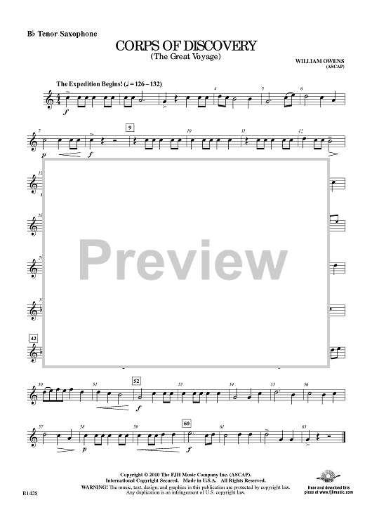 Digital Sheet Music for Corps of Discovery (The Great Voyage) - Bb Tenor Sax by William Owens scored for Beginning Band; id:415096