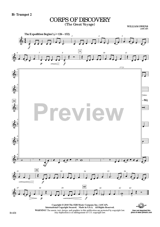Digital Sheet Music for Corps of Discovery (The Great Voyage) - Bb Trumpet 2 by William Owens scored for Beginning Band; id:415099