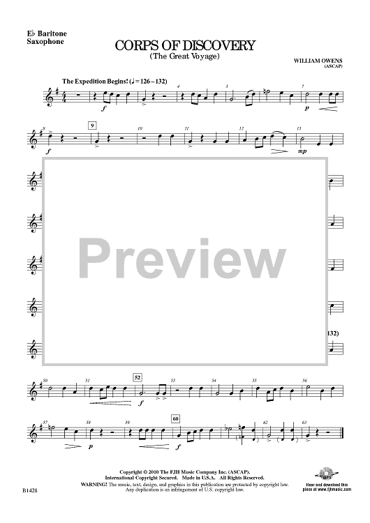 Digital Sheet Music for Corps of Discovery (The Great Voyage) - Eb Baritone Sax by William Owens scored for Beginning Band; id:415097