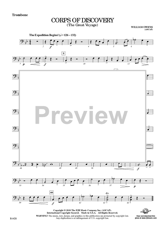 Digital Sheet Music for Corps of Discovery (The Great Voyage) - Trombone by William Owens scored for Beginning Band; id:415101