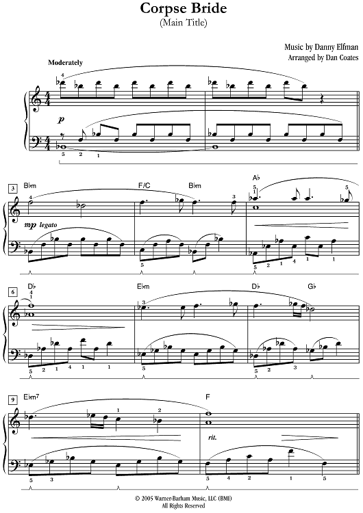 "Corpse Bride (Main Title)" Sheet Music by Danny Elfman