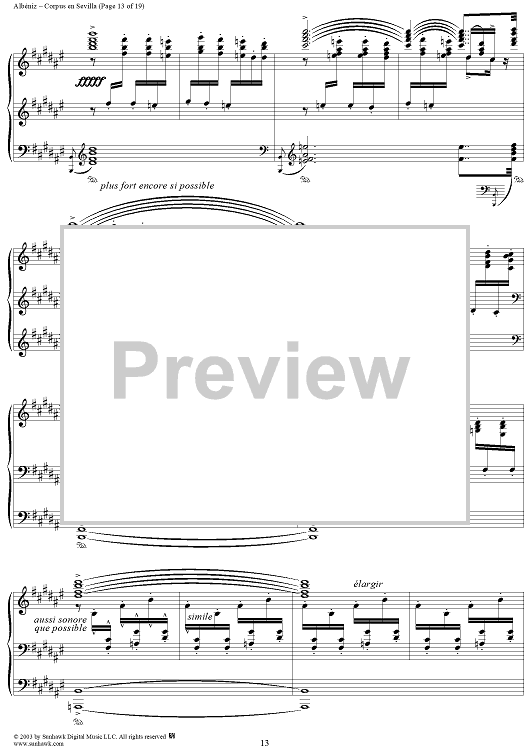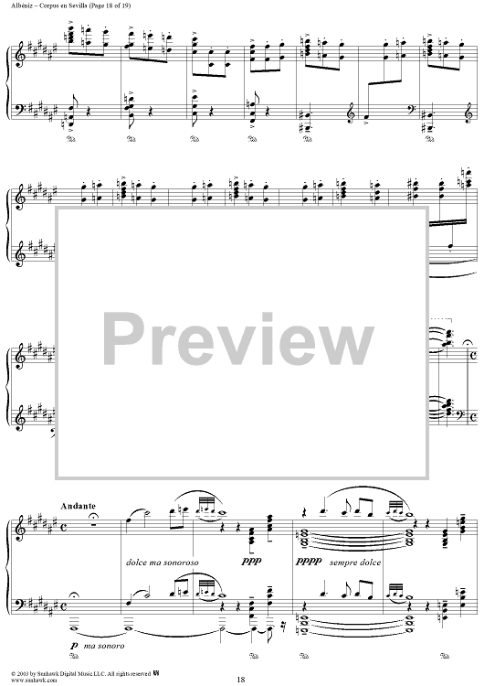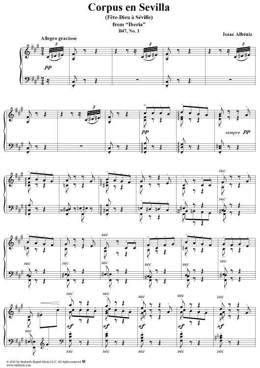 Digital Sheet Music for Corpus en Sevilla by Isaac Albéniz scored for Piano Solo; id:293690