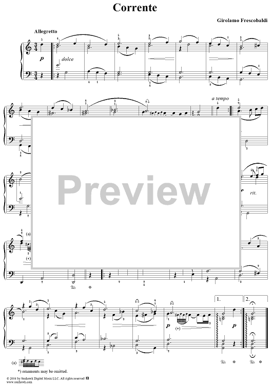Digital Sheet Music for Corrente by Girolamo Frescobaldi scored for Piano Solo; id:295669