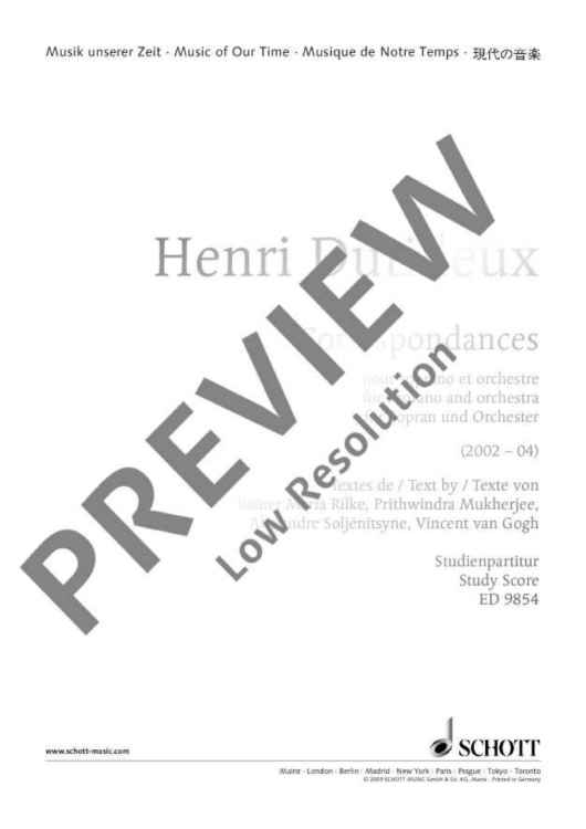 Digital Sheet Music for Correspondances - Full Score by Henri Dutilleux scored for Soprano And Orchestra; id:477129