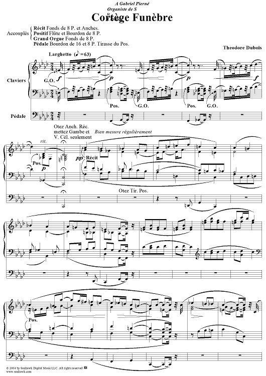 "Cortège Funèbre in F Minor" Sheet Music by Theodore Dubois