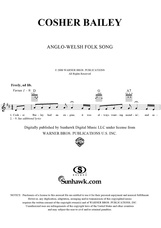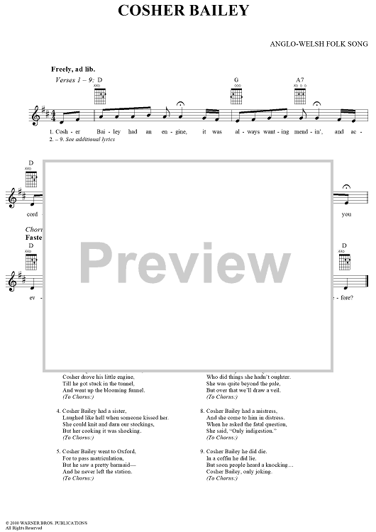 Digital Sheet Music for Cosher Bailey by Dr. Higley Brewster, Traditional scored for Lead Sheet; id:292674