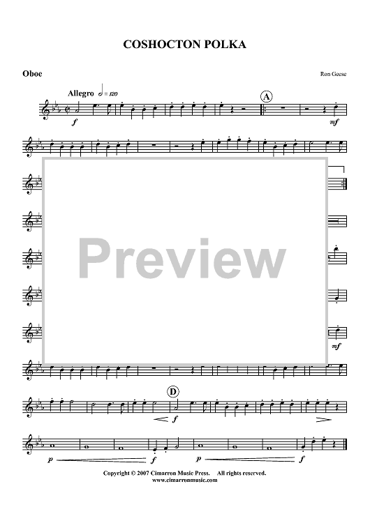 "Coshocton Polka - Oboe" Sheet Music by Ron Geese