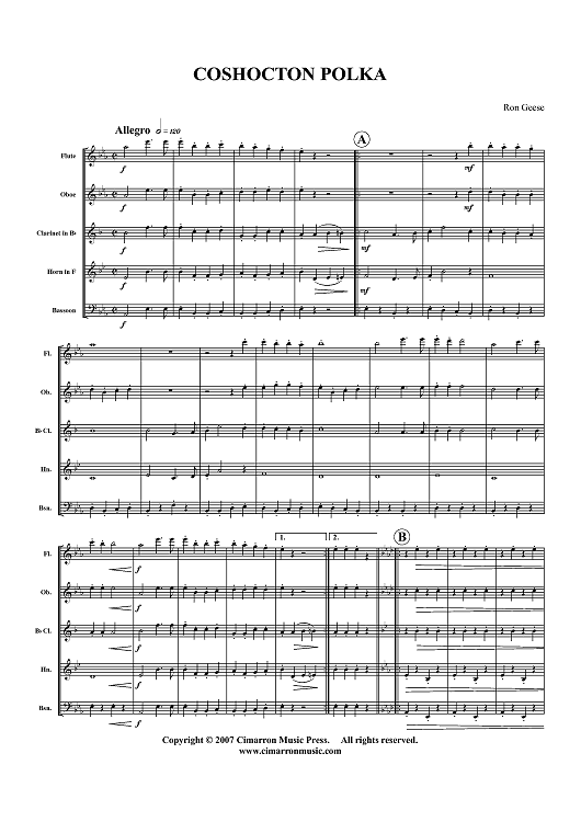 Digital Sheet Music for Coshocton Polka - Score by , Ron Geese scored for Woodwind Quintet; id:365807