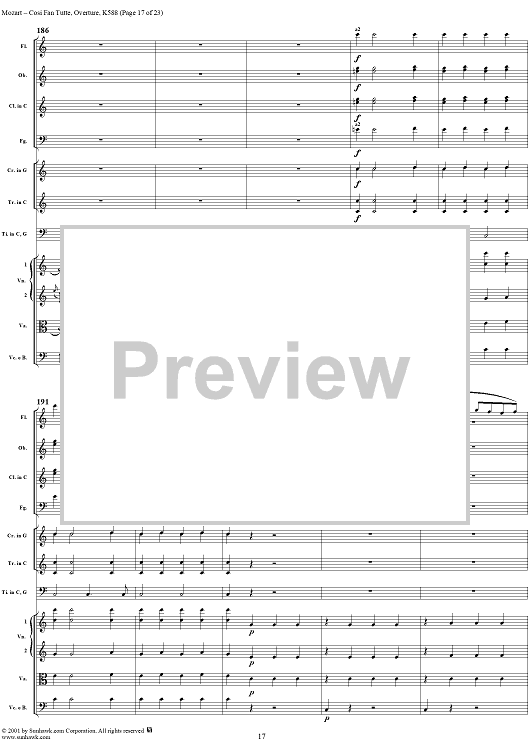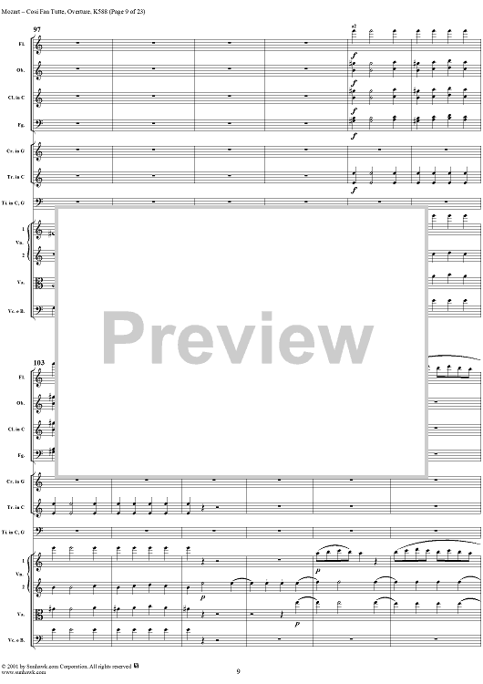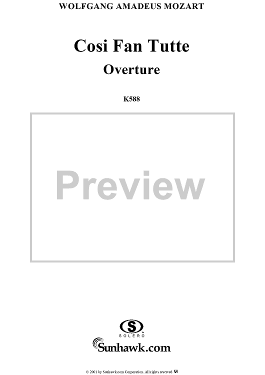 Digital Sheet Music for "Così fan tutte, o sia la scuola degli amanti", Ouverture K588 - Full Score by Wolfgang Amadeus Mozart scored for Orchestra; id:257631