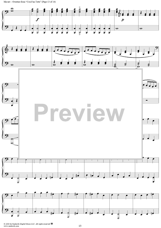 "Cosi Fan Tutte, Overture, K588" Sheet Music by Wolfgang Amadeus Mozart