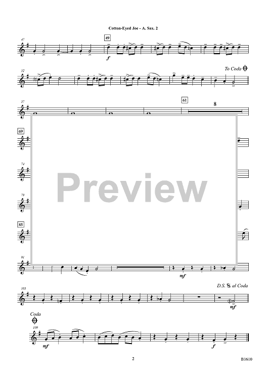 "Cotton-Eyed Joe - Eb Alto Sax 2" Sheet Music by Traditional