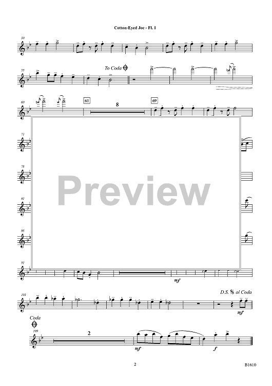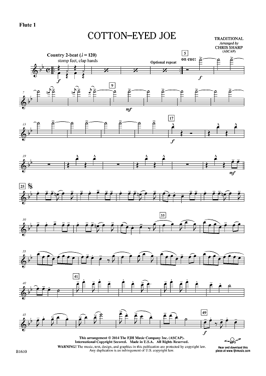 Digital Sheet Music for Cotton-Eyed Joe - Flute 1 by Traditional, Chris Sharp scored for Concert Band; id:447829