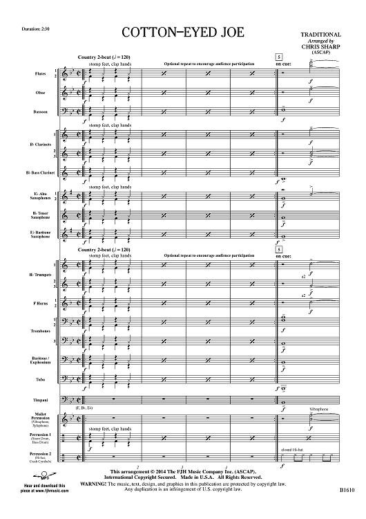 Digital Sheet Music for Cotton-Eyed Joe - Score by Traditional, Chris Sharp scored for Concert Band; id:447827