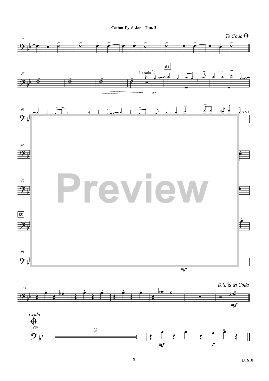 "Cotton-Eyed Joe - Trombone 2" Sheet Music by Traditional