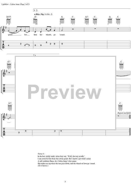 Digital Sheet Music for Cotton Jenny by Gordon Lightfoot, Louis Martinez scored for Easy Guitar Tab/Vocal; id:250716