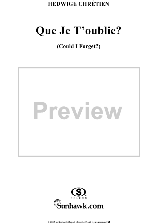 "Could I Forget? (Que Je T'oublie?)" Sheet Music by Hedwige Chretien