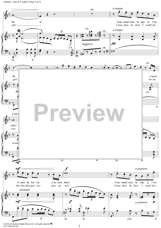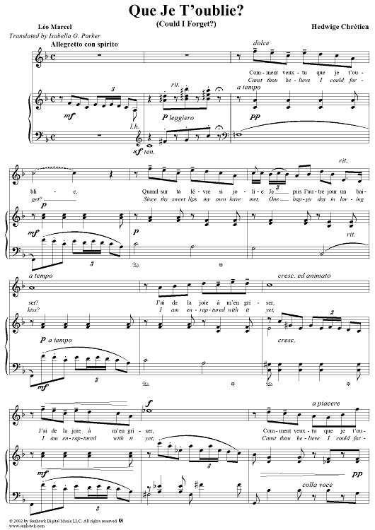 Digital Sheet Music for Could I Forget? (Que Je T'oublie?) by Hedwige Chrétien, Leo Marcel scored for Voice/Piano; id:269440