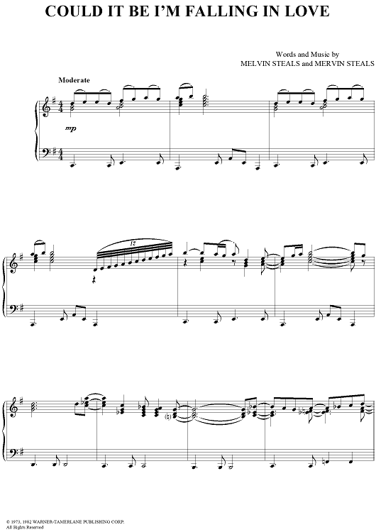 Digital Sheet Music for Could it Be I'm Falling in Love by Melvin Steals, The Spinners scored for Piano/Vocal/Chords; id:259000