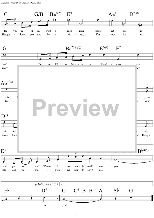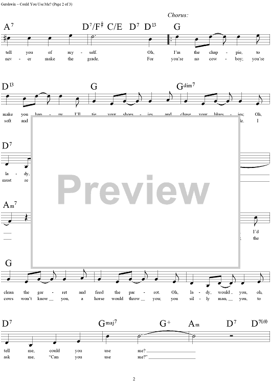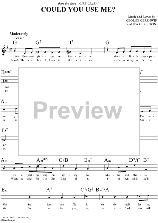 Digital Sheet Music for Could You Use Me? by , George Gershwin, Ira Gershwin scored for Lead Sheet; id:283586