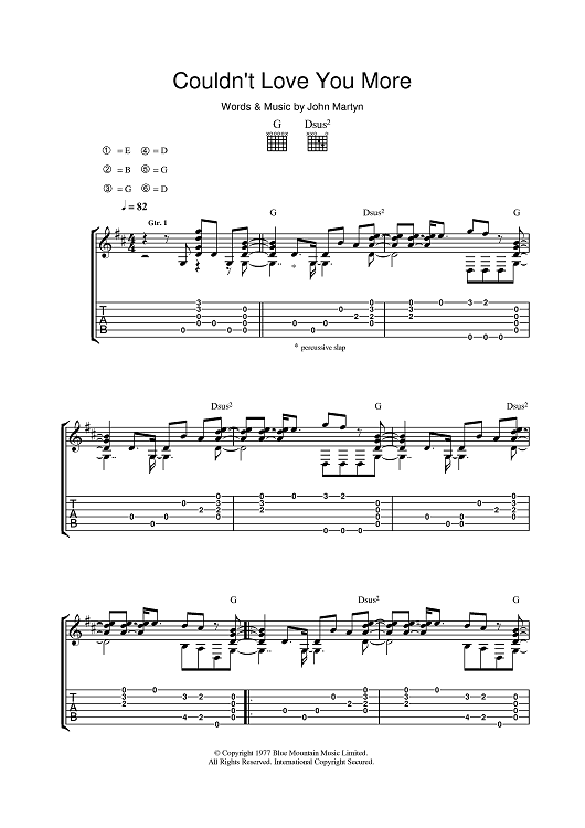 Digital Sheet Music for Couldn't Love You More by John Martyn scored for Guitar Tab; id:401238