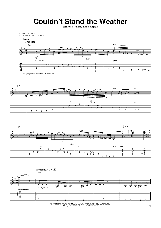 Digital Sheet Music for Couldn't Stand The Weather by Stevie Ray Vaughan scored for Guitar Tab; id:391091