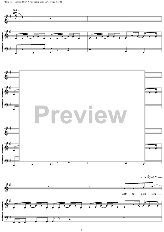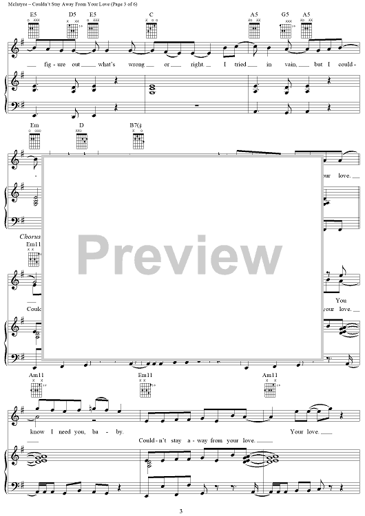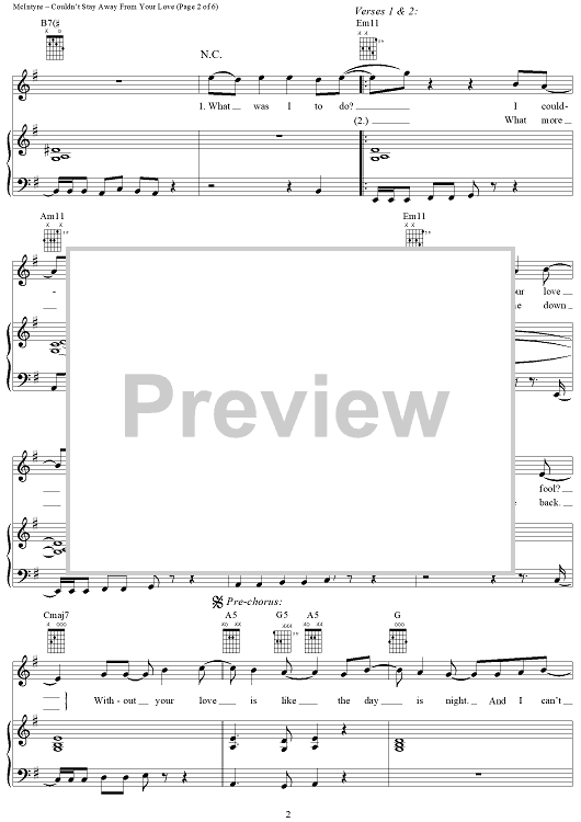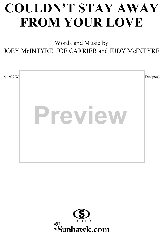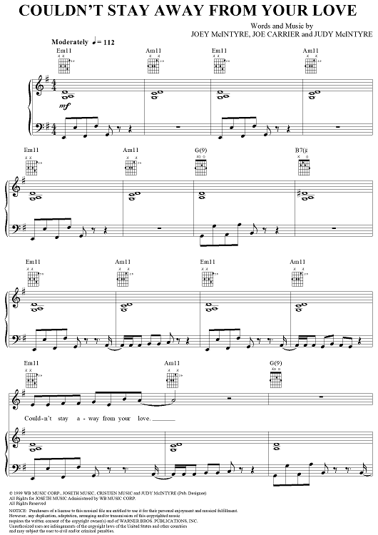 Digital Sheet Music for Couldn't Stay Away from Your Love by Joey McIntyre, Joe Carrier, Judy McIntyre scored for Piano/Vocal/Chords; id:241383