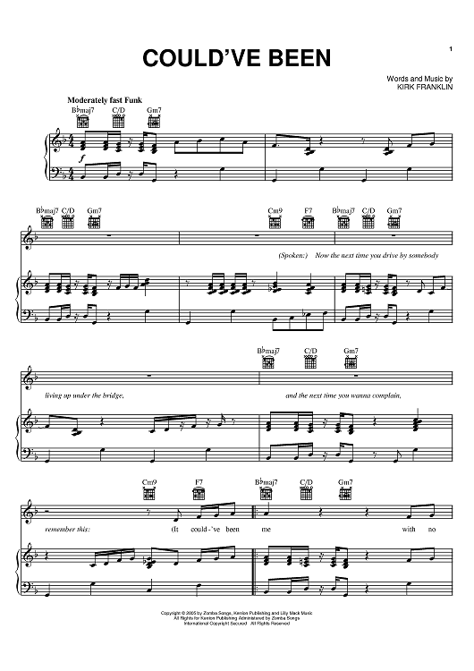 Digital Sheet Music for Could've Been by Kirk Franklin scored for Piano/Vocal/Chords; id:388840