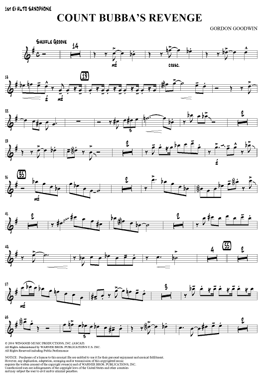 Digital Sheet Music for Count Bubba's Revenge - E-flat Alto Saxophone 1 by Gordon Goodwin, Gordon Goodwin's Big Phat Band scored for Jazz Ensemble; id:307351