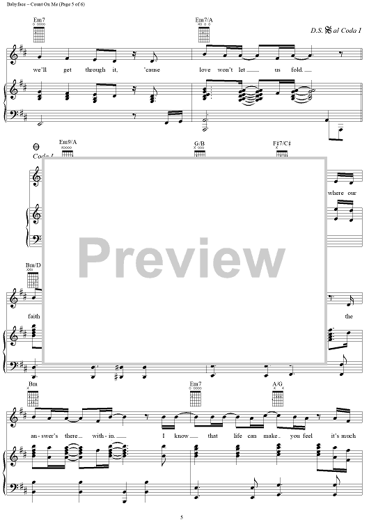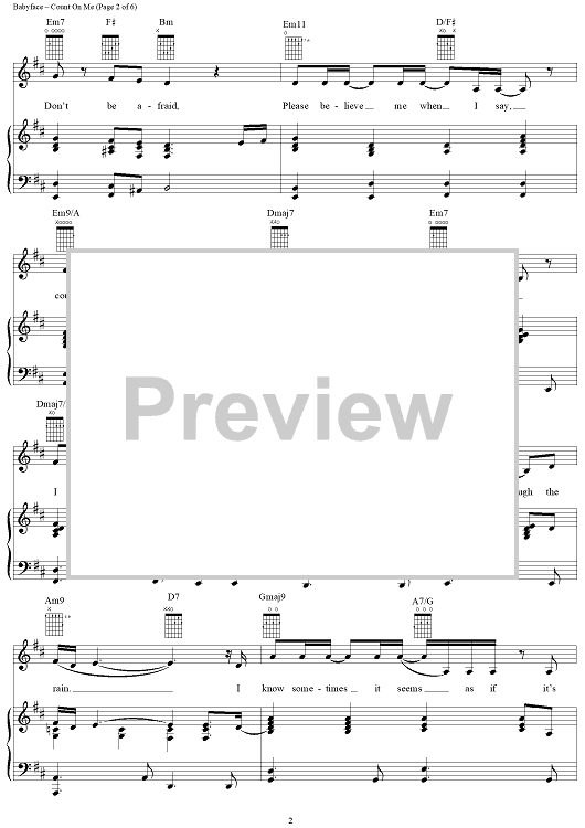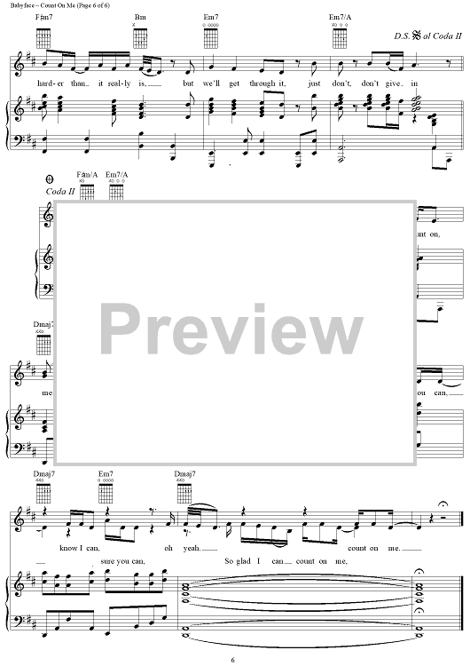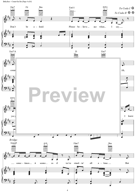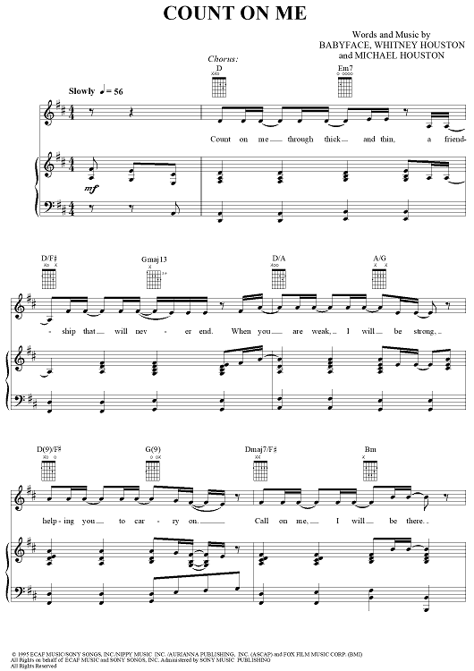 Digital Sheet Music for Count On Me by Whitney Houston scored for Piano/Vocal/Chords; id:189402