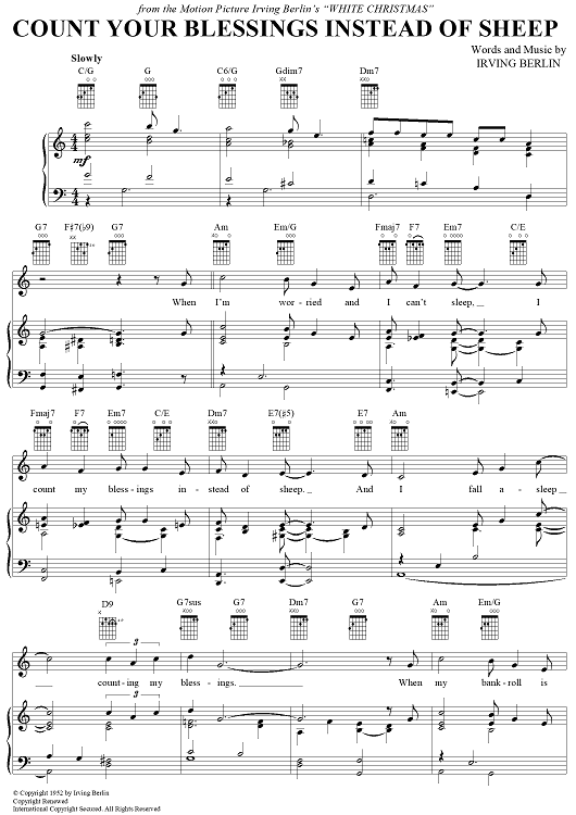Digital Sheet Music for Count Your Blessings Instead of Sheep by Irving Berlin, Bing Crosby, Eddie Fisher, Rosemary Clooney scored for Piano/Vocal/Chords; id:403296