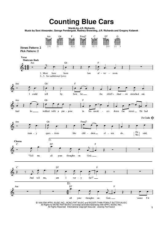 Digital Sheet Music for Counting Blue Cars by Scot Alexander, Dishwalla, George Pendergast, J. R. Richards scored for Easy Guitar; id:370892