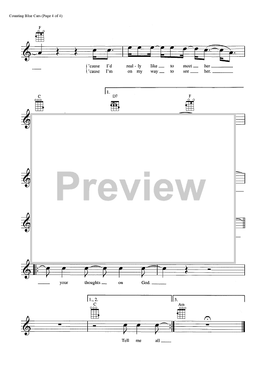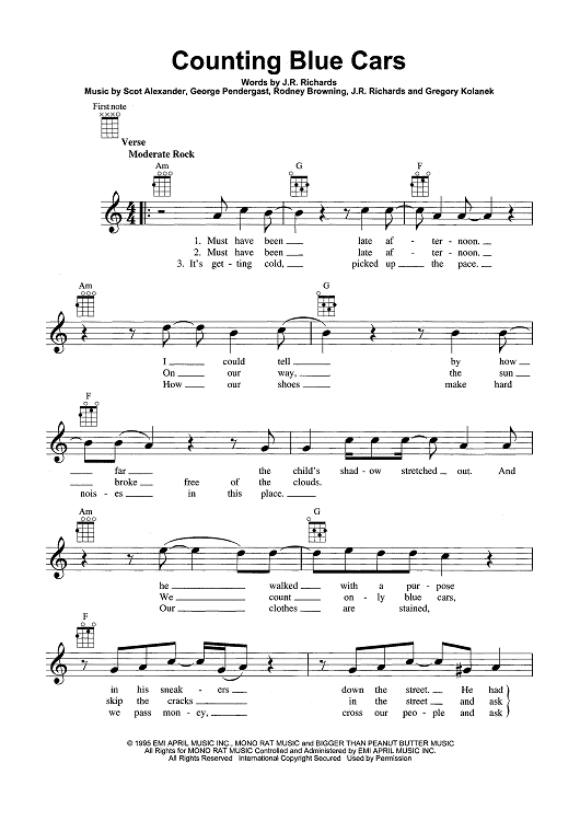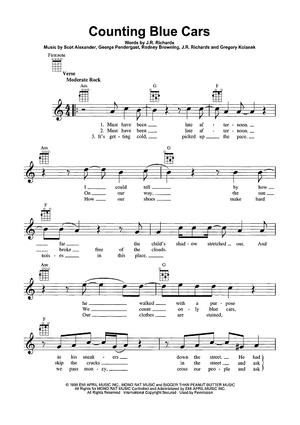 Digital Sheet Music for Counting Blue Cars by Scot Alexander, Gregory Kolanek, George Pendergast, J. R. Richards, Rodney Browning scored for Ukulele/Vocal; id:465495