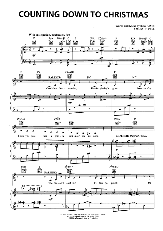 "Counting Down To Chrismas" Sheet Music by Benj Pasek