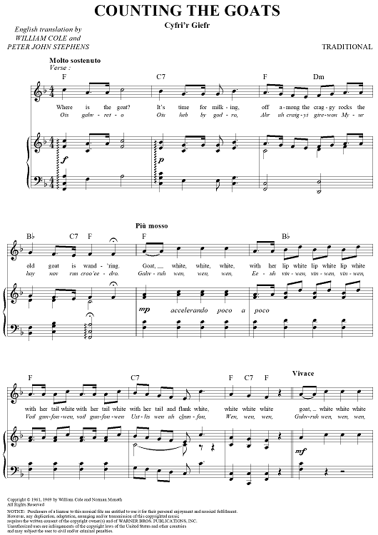 Digital Sheet Music for Counting the Goats by Norman Monath, Traditional scored for Piano/Vocal/Chords; id:260831
