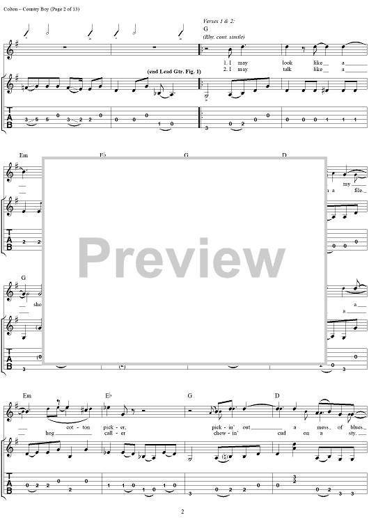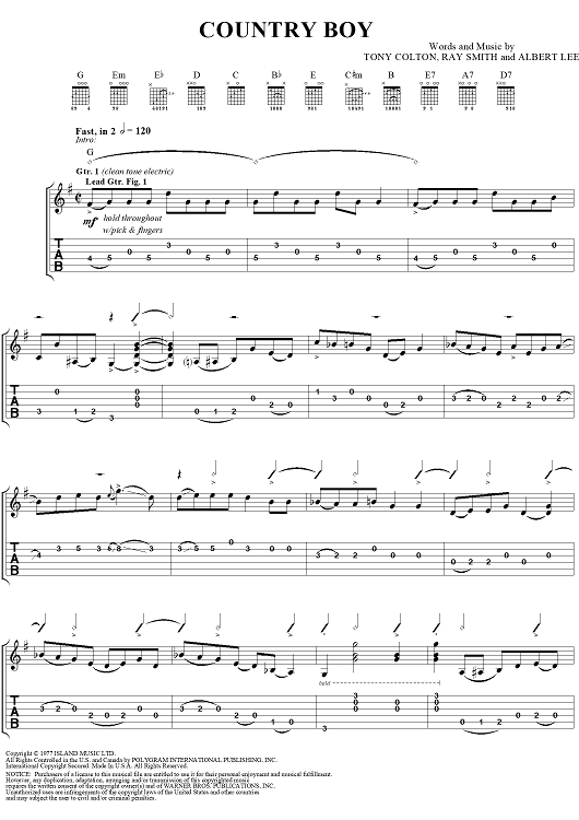 Digital Sheet Music for Country Boy by Albert Lee, Tony Colton, Ray Smith scored for Guitar Tab/Vocal; id:124378