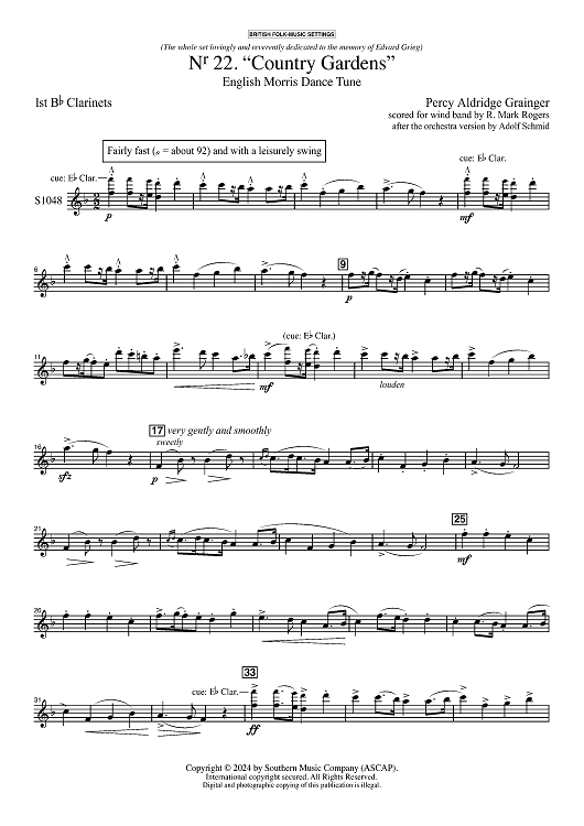 "Country Gardens for Symphonic Band - Bb Clarinet 1" Sheet Music by Percy Grainger
