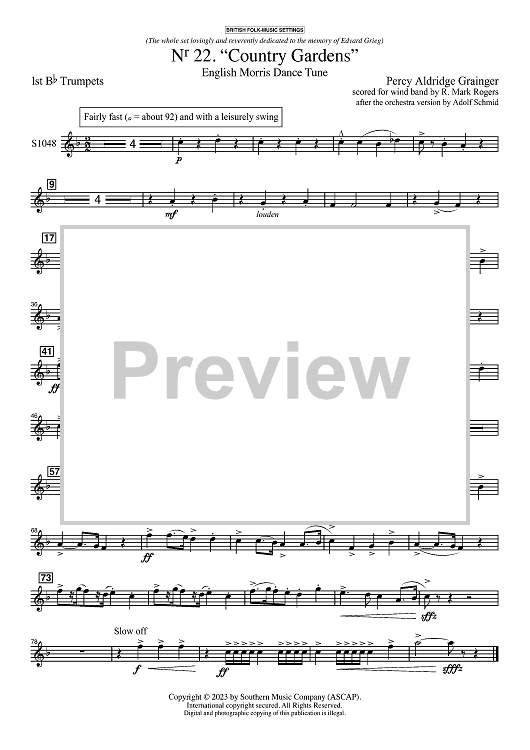 "Country Gardens for Symphonic Band - Bb Trumpet 1" Sheet Music by Percy Grainger