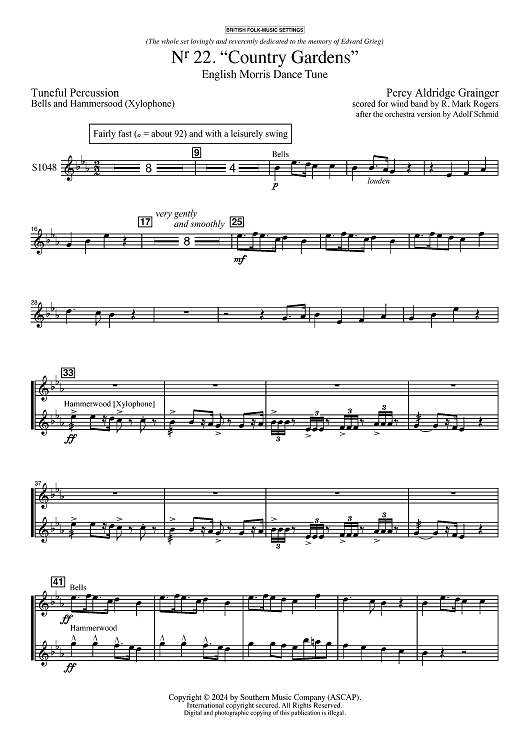 "Country Gardens for Symphonic Band - Bells & Xylophone" Sheet Music by Percy Grainger