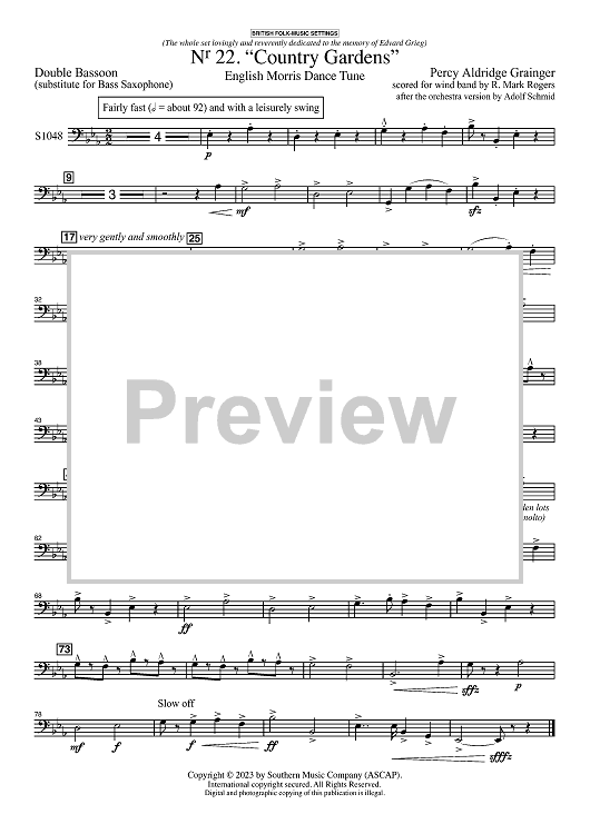 "Country Gardens for Symphonic Band - Contrabassoon" Sheet Music by Percy Grainger