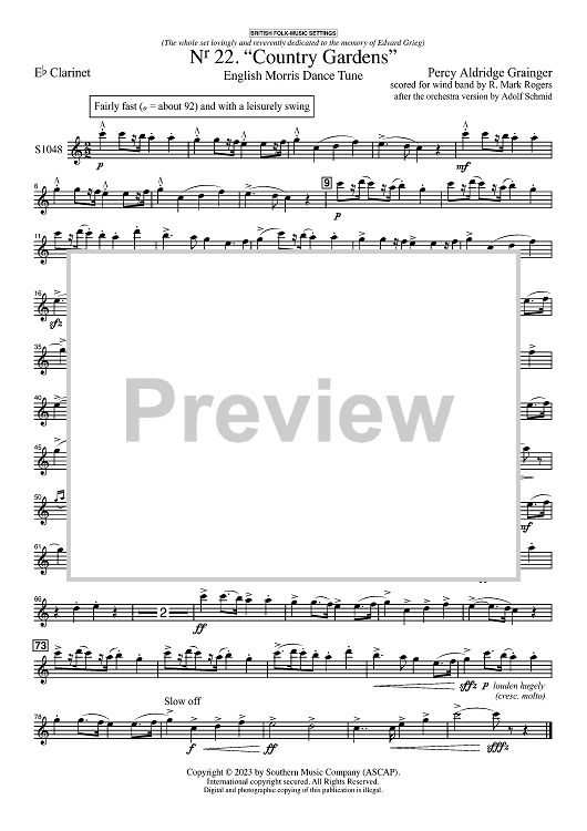 "Country Gardens for Symphonic Band - Eb Clarinet" Sheet Music by Percy Grainger